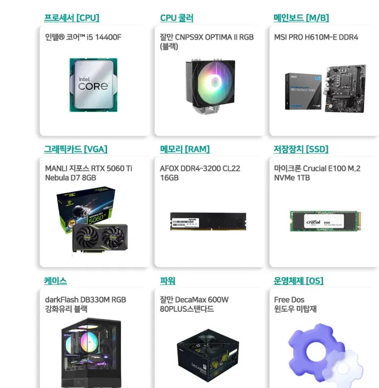 인텔 14세대 14400F 5060Ti_8G 16G 1TB