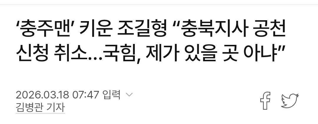 충주맨 길러낸 조길형도 노인네들 모인 국힘당 손절이네 ㅋㅋ