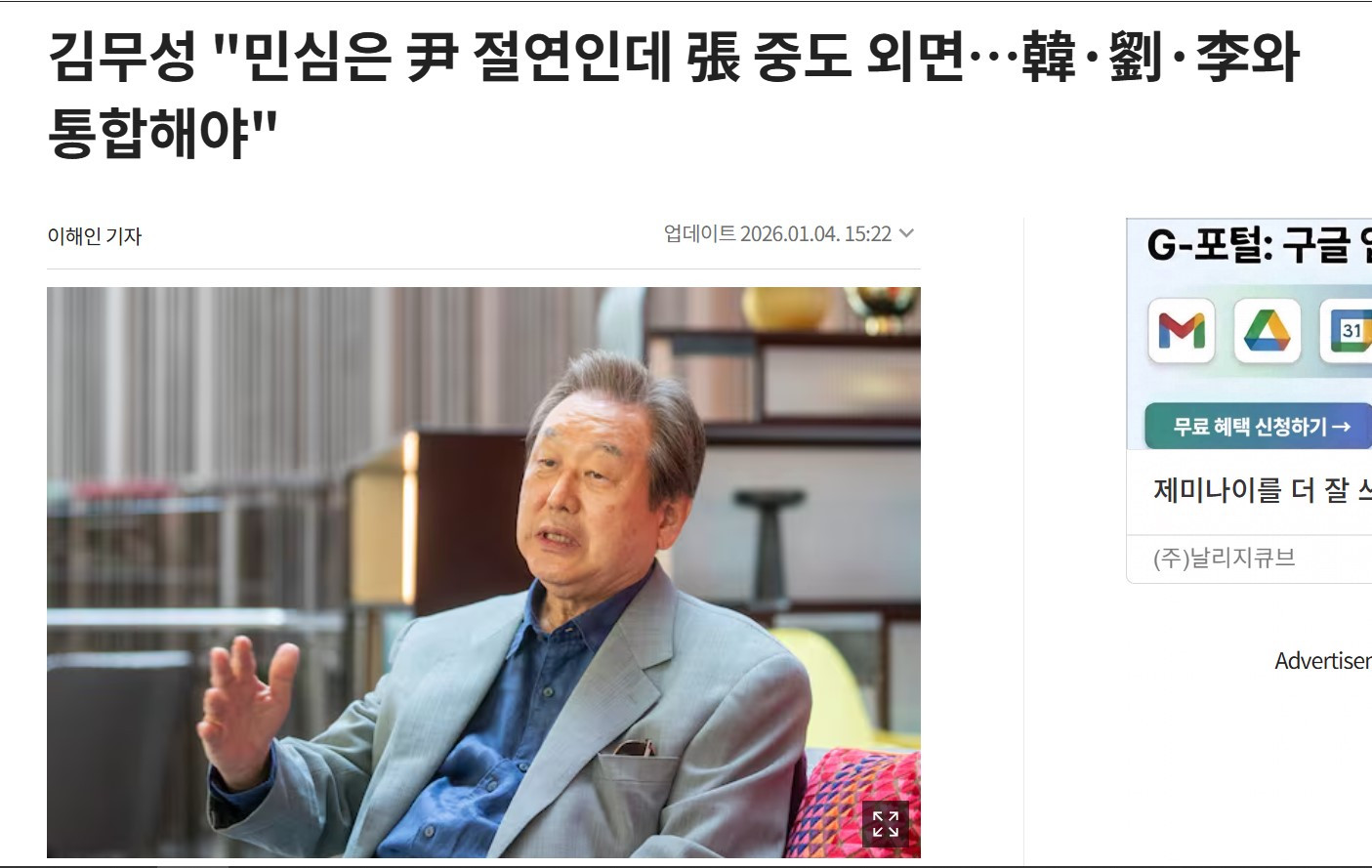 1월달에 김무성이 이와같은 인터뷰를 함 ㄷㄷ