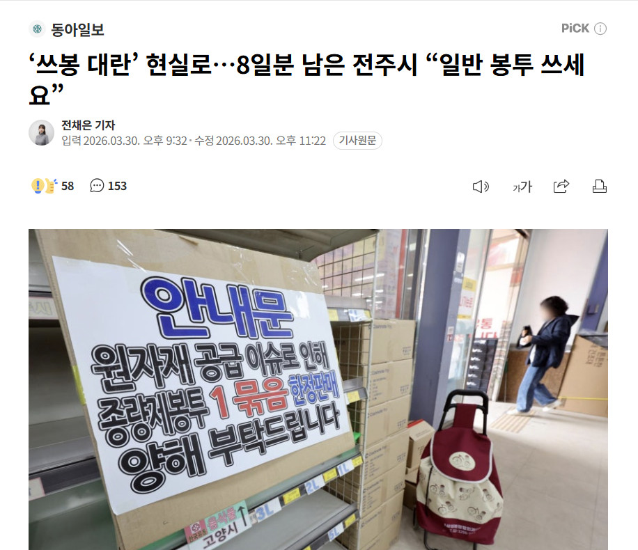 이재명의 쓰레기봉투 재고 넉넉하다는 해명도 반나절만에 전라도에서 거짓말로 드러나 파문ㅋㅋㅋㅋㅋ