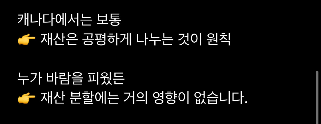 - 즉 바람을 피웠건 뭘 했건 폭행이나 불법적인 일을 저지르지 않은 이상 나라에서 부부 사이에서 일어난 일들에 관여하지 않음