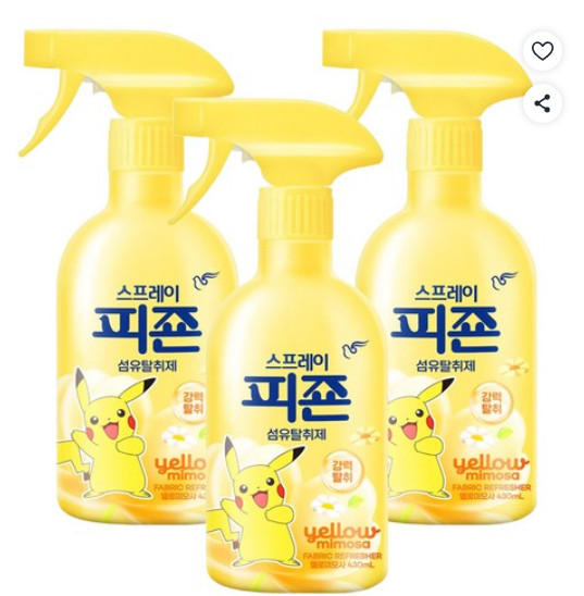 피죤 스프레이 강력 섬유탈취제 옐로미모사, 430ml, 3개