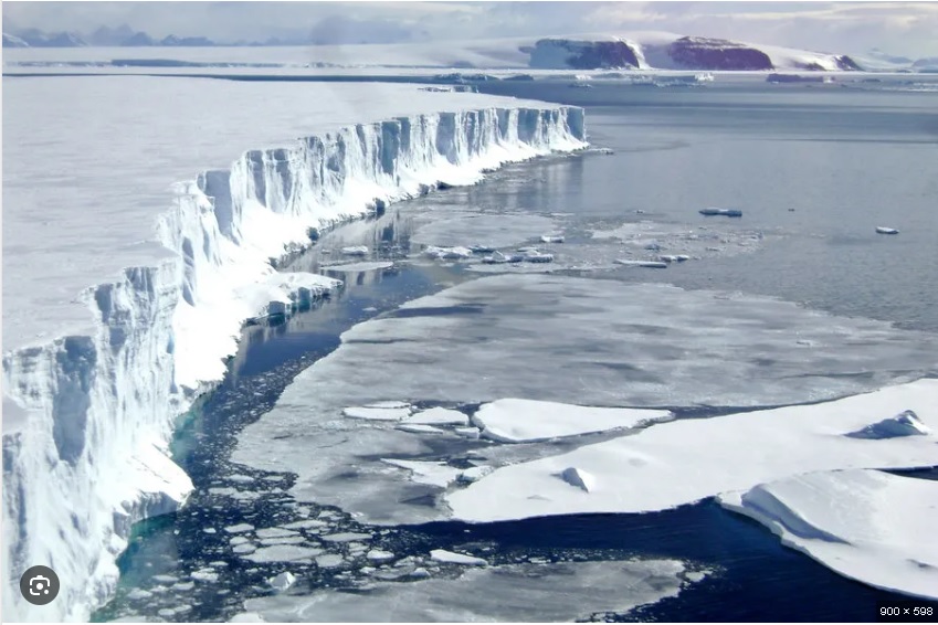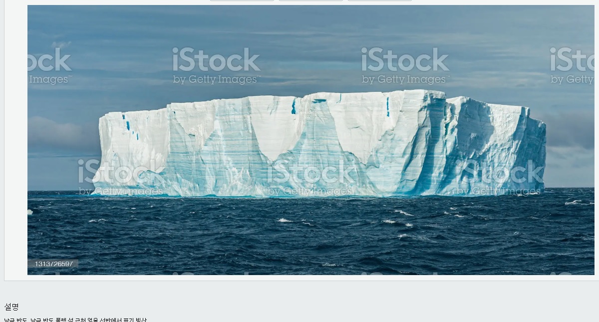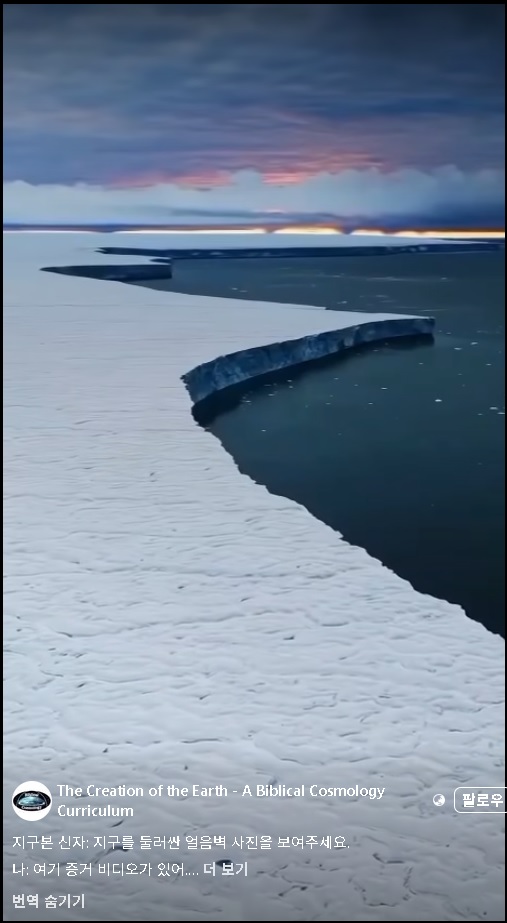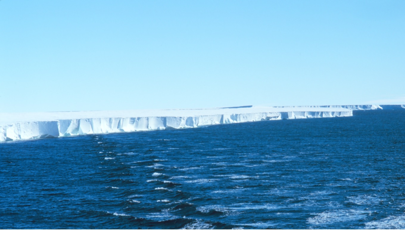 남쪽 바다 끝에 얼어서 형성된 두께가 일정하고 윗면이 평평한