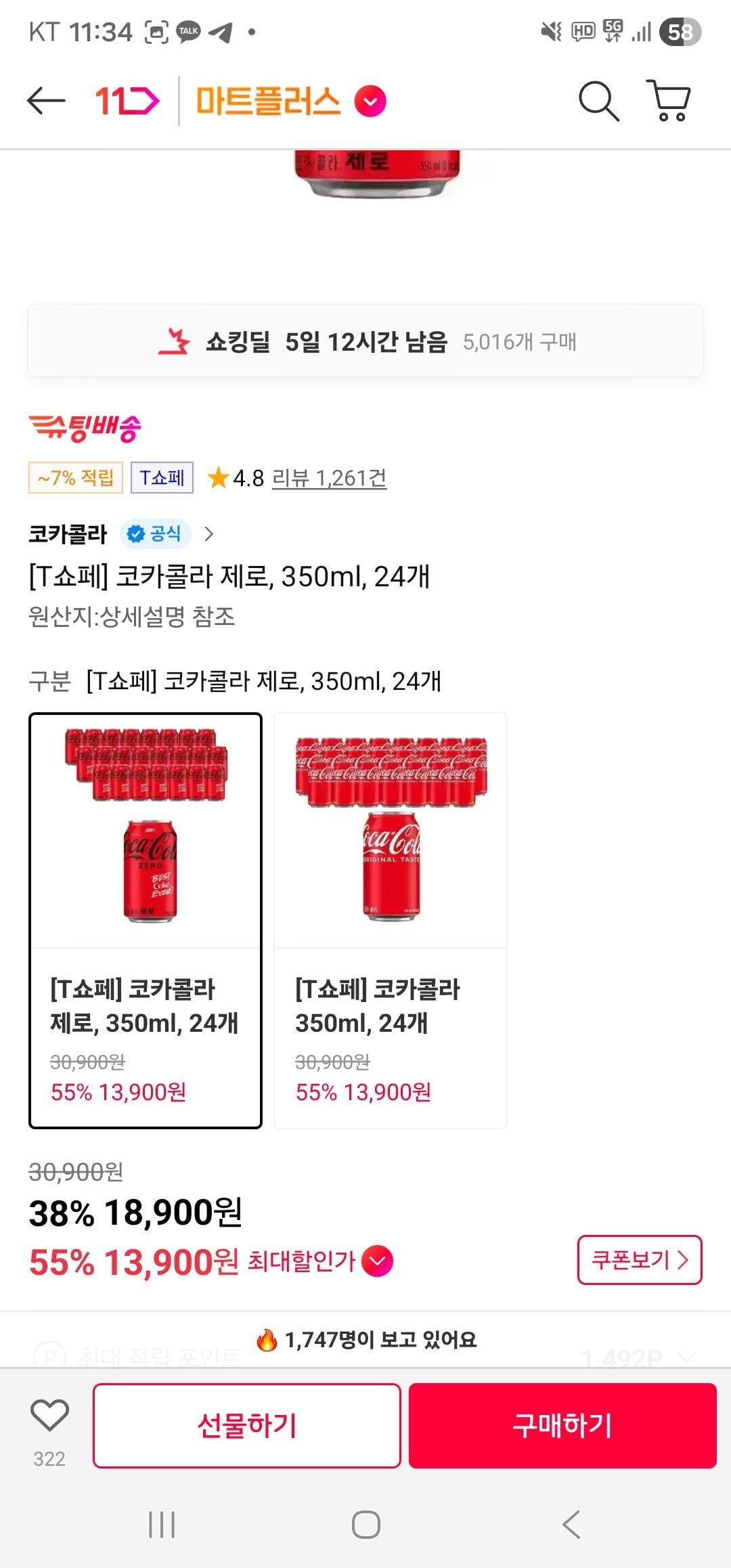 : 티멤) 코카콜라 제로, 350ml, 24개