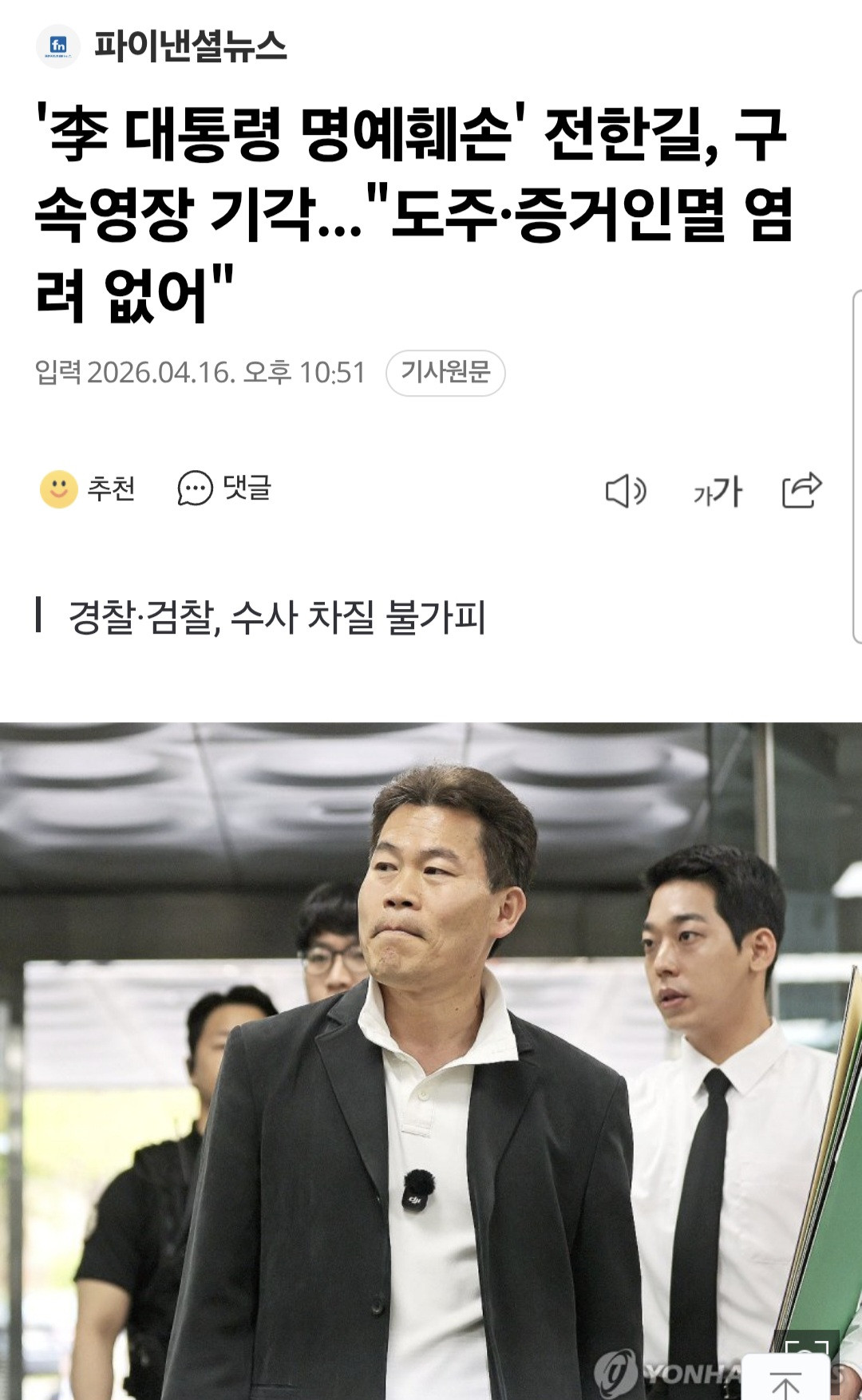 무슨 씨발 명예훼손건으로 수갑을 처 채우냐?