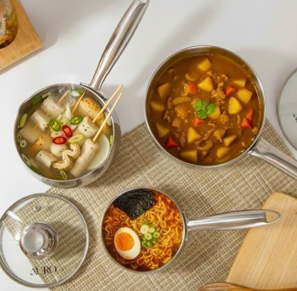사이즈별로 쓰임이 달라서 여러 개 두고 쓰기 좋음 / 5중 바닥 구조라 열도 고르게 올라오는 느낌이고 / 스텐이라 오염 걱정 없이 딱 좋다 이기야!