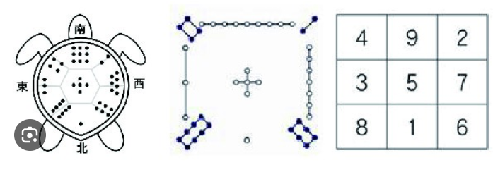 고대의 전설에 의하면 거북이 등껍질에 숫자로 새겨져 있었다고 하며