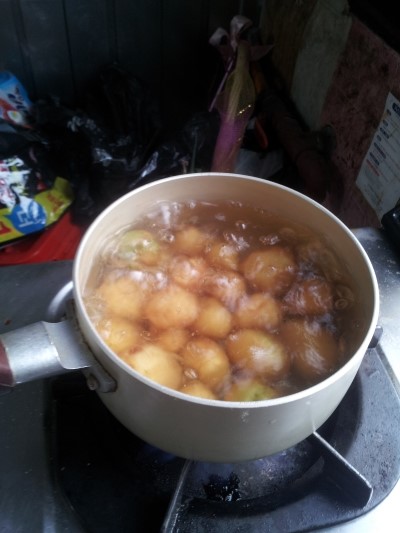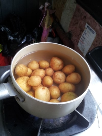 한여름 더위속에서 감자가 타지안토록 후라이팬앞을 지켜서서
