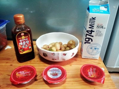 레시피도 없이 불알감자조림과 가격이 비슷한 우유를 같이쳐먹자