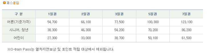 그래도 우리 게이들을 위해서 코레일에서는 O-Train 패스를 운영하고 있지.