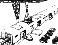 (좌) 1층식 밀폐형 화물차에 짐을 싣는 법. 승용차도 스스로 실을 수 있다.