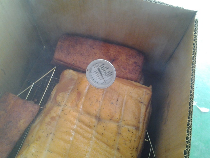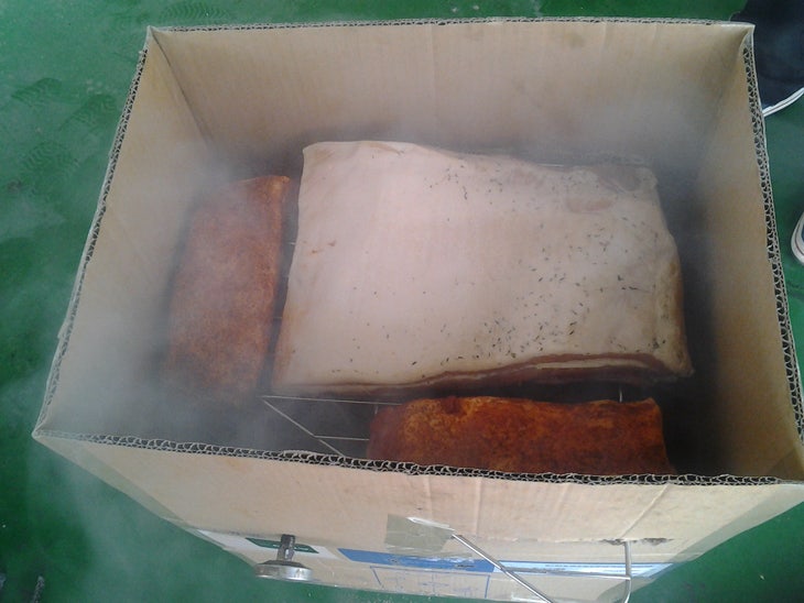 원래는 온도 낮게 해서..훈연제 다타도록 4~6시간, 7~9시간 정도 훈연 해야한다.