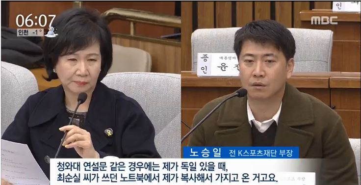 o 그런데 어제 청문회에서 태블릿PC 위증모의 의혹에 연루된 노승일 전 K스포츠재단 부장이 새로운 주장을 내놓습니다.
