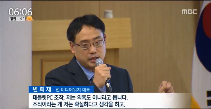 o 변희재 미디어워치 전 대표는 방송이 증거를 조작해 대통령 탄핵을 몰고 갔다고 주장.