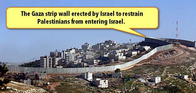 이스라엘은 하마스 출신 조직원들이 잠입하는 거 막기 위해 아예 가자 지구와 이스라엘 사이에 장벽을 설치함. (가자 지구를 두번 다시 이스라엘 영토로 받아들이지 않겠다는 결심이기도 함)