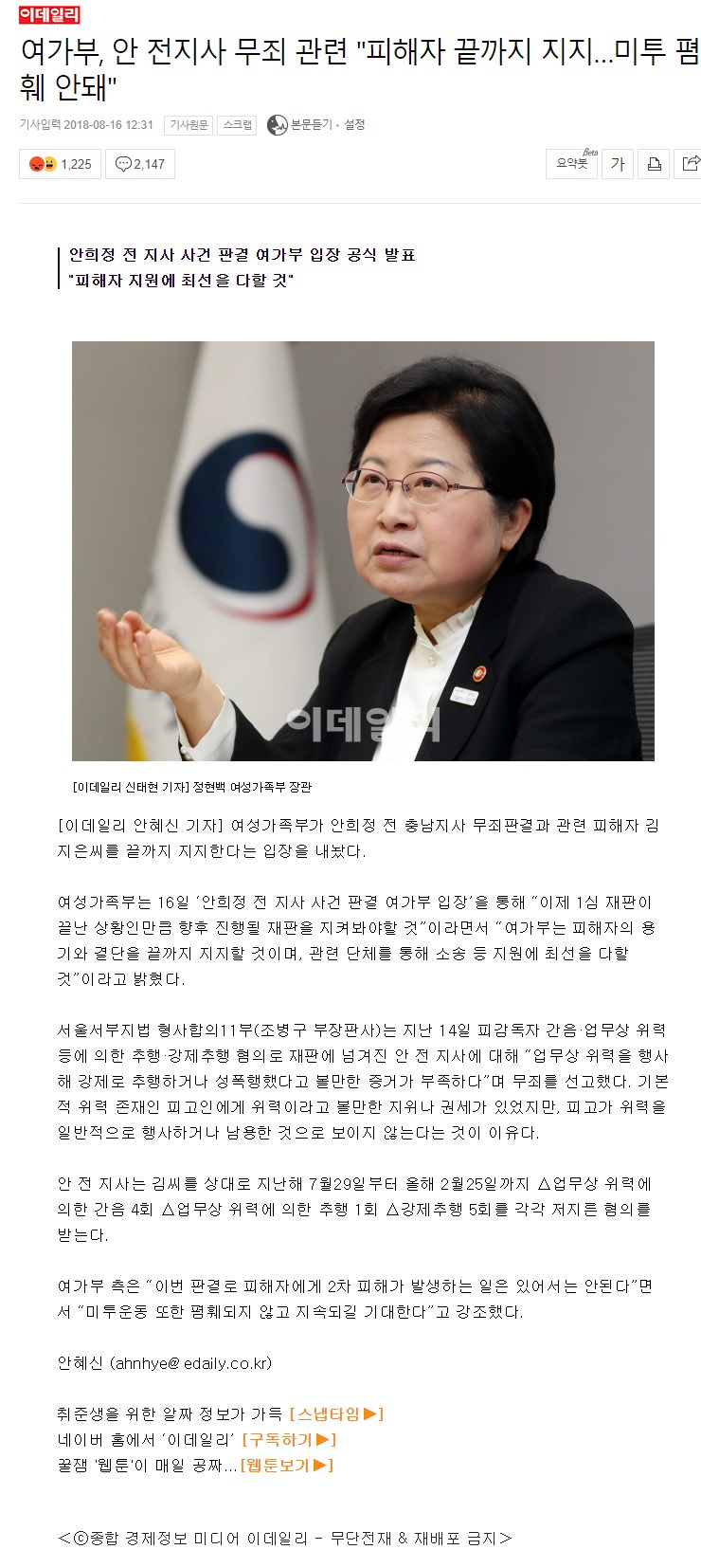 안희정 및 그 가족들은 여가부 보호받는 국민 아닌듯한 망언을 공개적으로 해버림