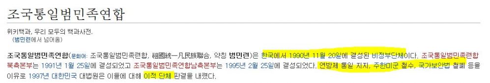 북한과 싱크율 100%를 보이는 주장을 하고 다니는 이적단체.