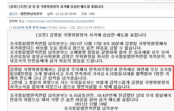 김정일 뒤졌을 때 범민련 남측본부 ㅋㅋㅋ