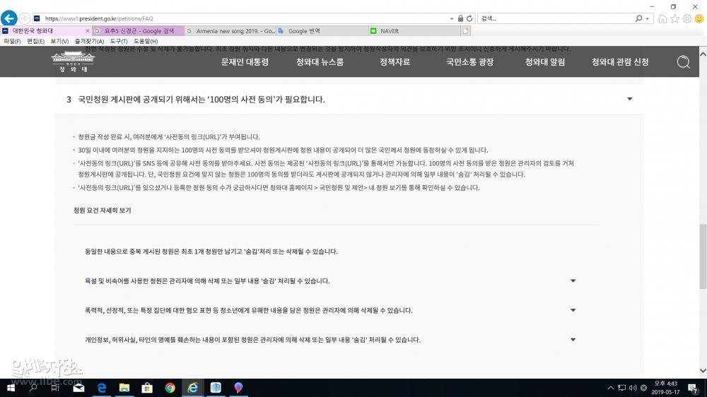 청원요건에 맞지 않다고 하는데.