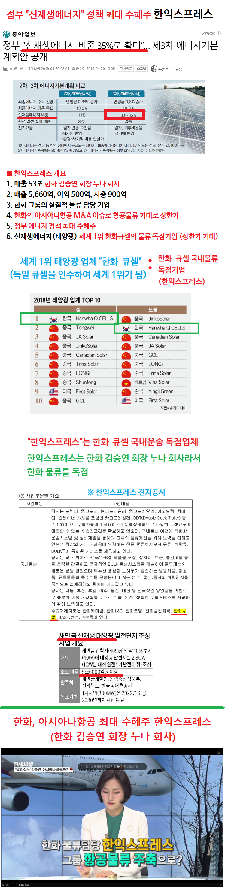 5) 그리고 이 한화큐셀의 물류를 독점하고 있는 기업, 한익스프레스.