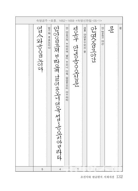 <개량이전의 조선시대 한글(숙명공주의 언문편지): 읽기 힘들다.>