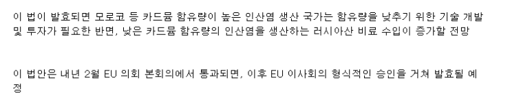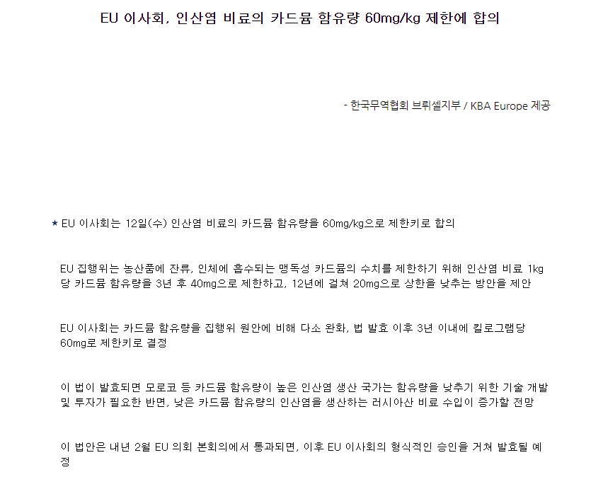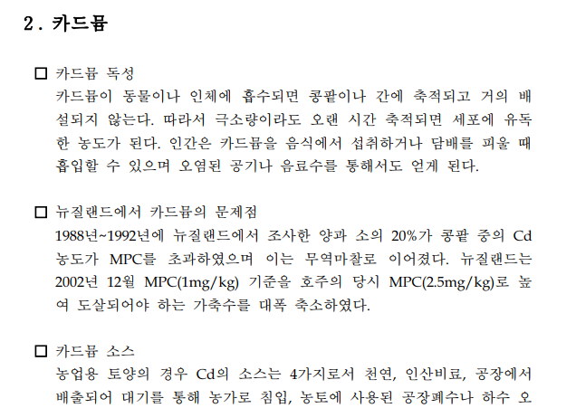수치를 다시 하양조절 또는 카드뮴을 배제하도록 권고 하고