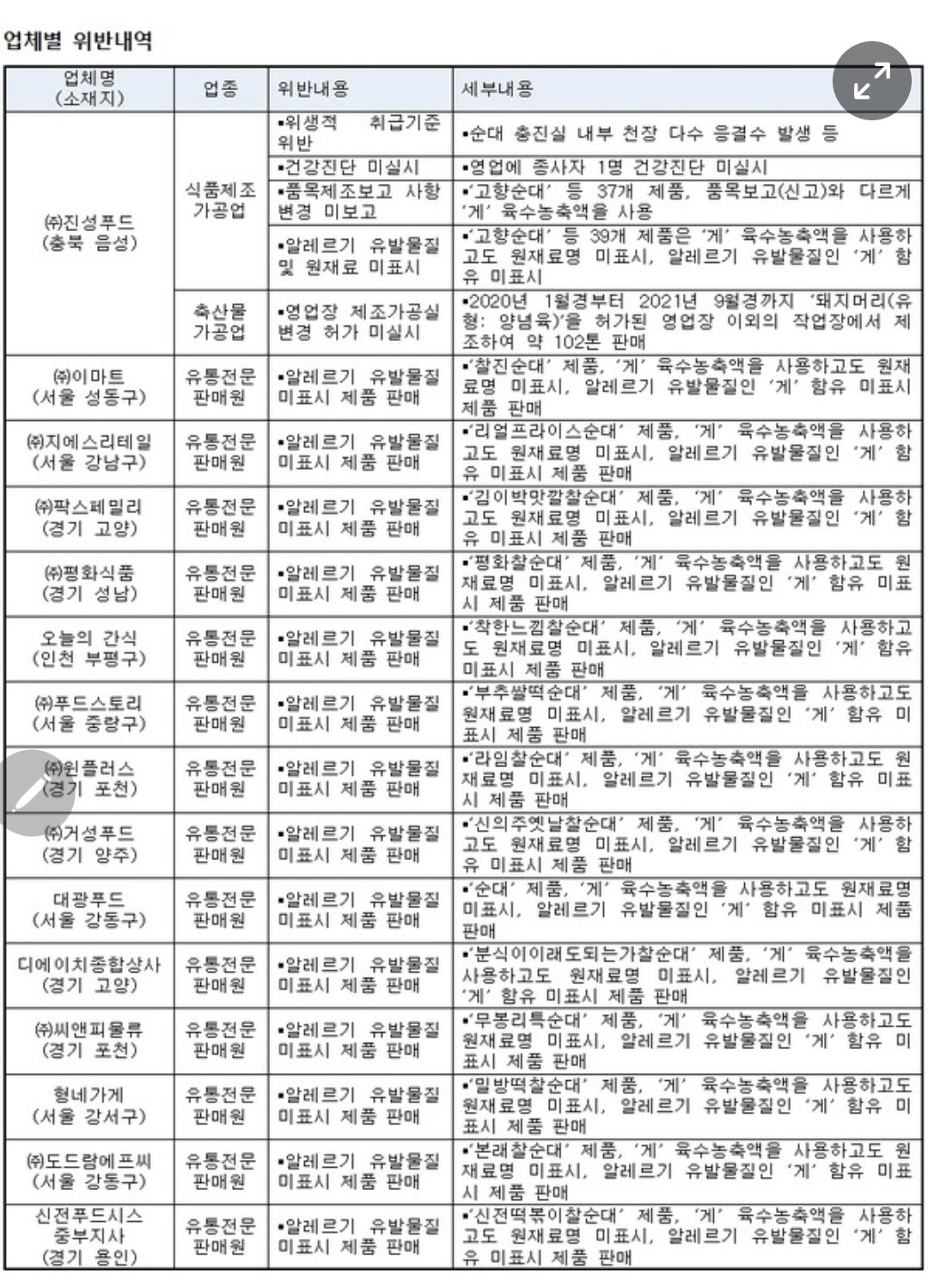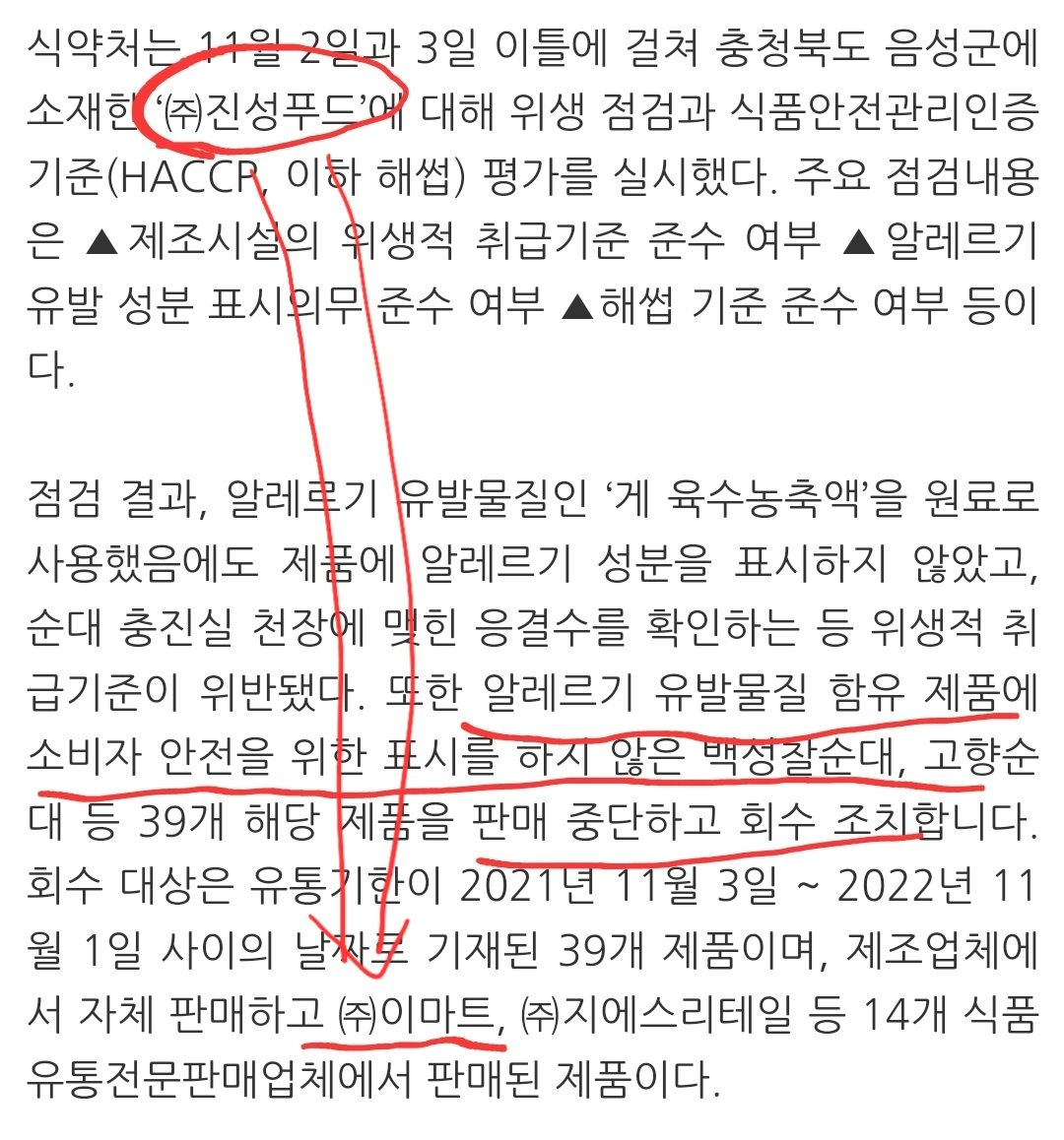 진성식품 => 이마트 납품 => 게 알래르기 유발 물질 표기 안함