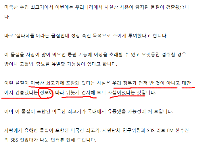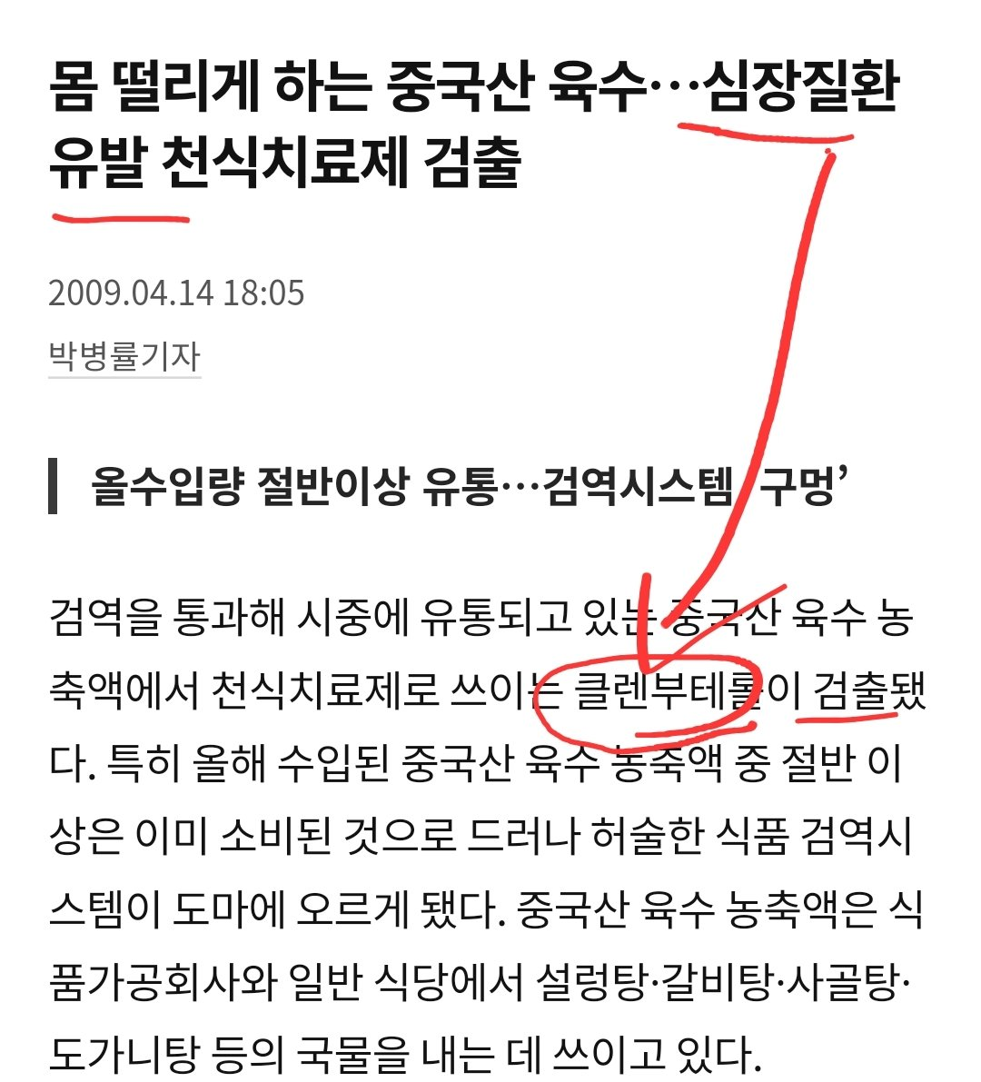 => 중국산 클렌부태롤 검출 사건 있었음. => 즉 알레르기 유발 정체는