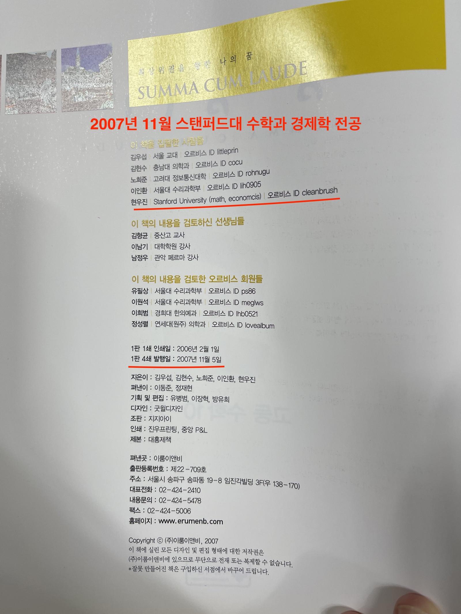 3. 2007년 11월 스탠포드대 수학과 경제학 복수전공ㅗ(?)