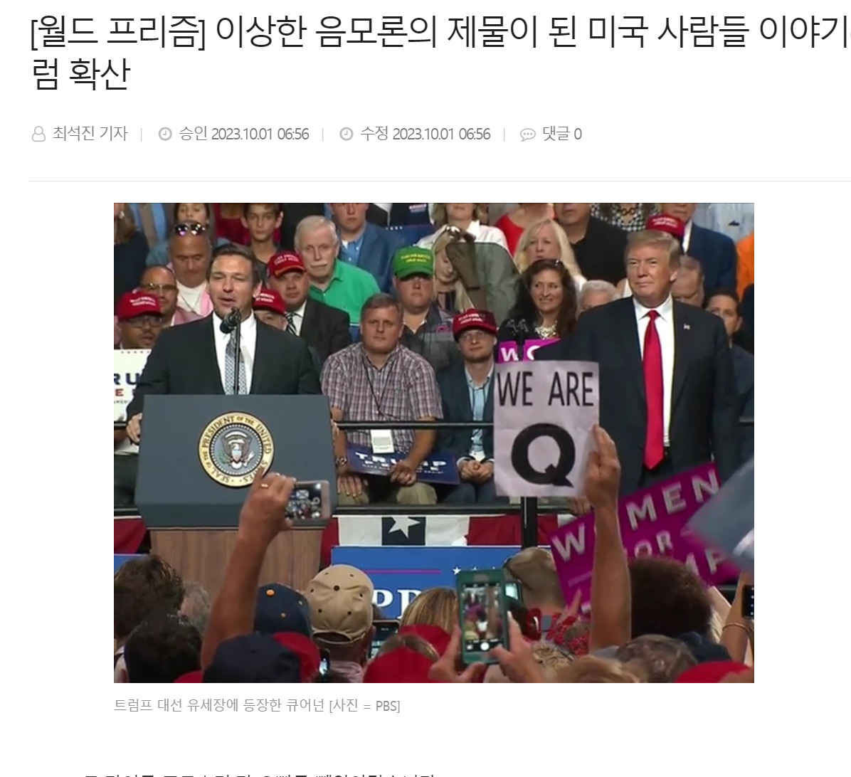 트럼프 대선 유세장에 등장한 큐어넌 [사진 = PBS]