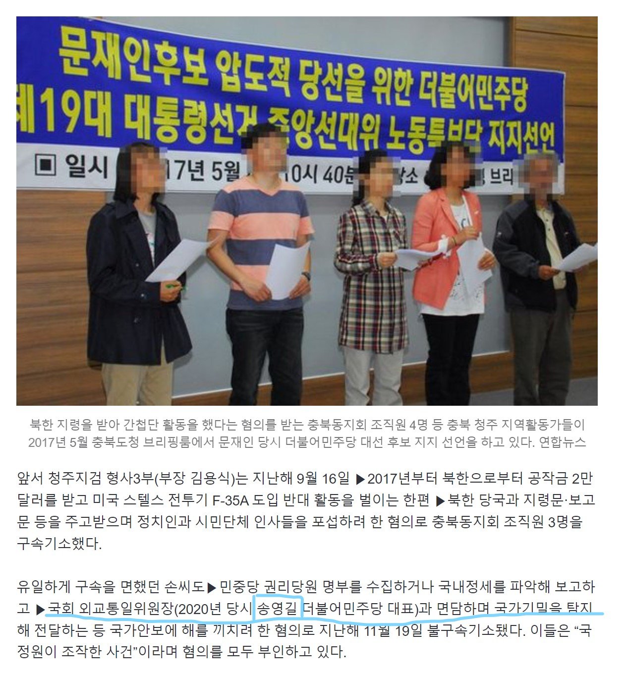 송영길한테 기밀자료를 넘김