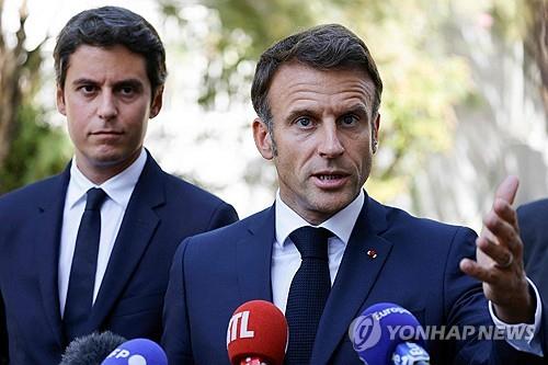에마뉘엘 마크롱 프랑스 대통령(오른쪽)과 가브리엘 아탈 교육부 장관