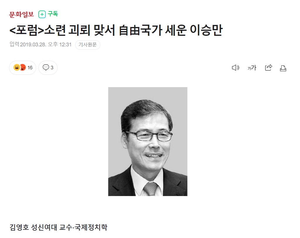 1946년 남한에서 단독정권 수립을 주장한 ‘정읍연설’로 알려진 ‘이승만 독트린’은 대서사시 속 오디세우스가 처한 딜레마와 같다. 소련에 의한 한반도 전체의 적화냐, 아니면 남한에 자유민주주의 단독정권을 수립할 것이냐 하는 갈림길에서 이승만은 후자를 택한 것이다. 그의 전략적 선택이 아니었다면 오늘날 한국인은 대한민국이라는 ‘자유(自由)의 보금자리’에서 삶을 누릴 수 없을 것이다.
