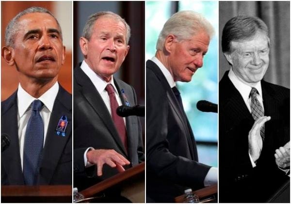 왼쪽부터 버락 오바마, 조지 W. 부시, 빌 클린턴, 지미 카터 미국 전 대통령.