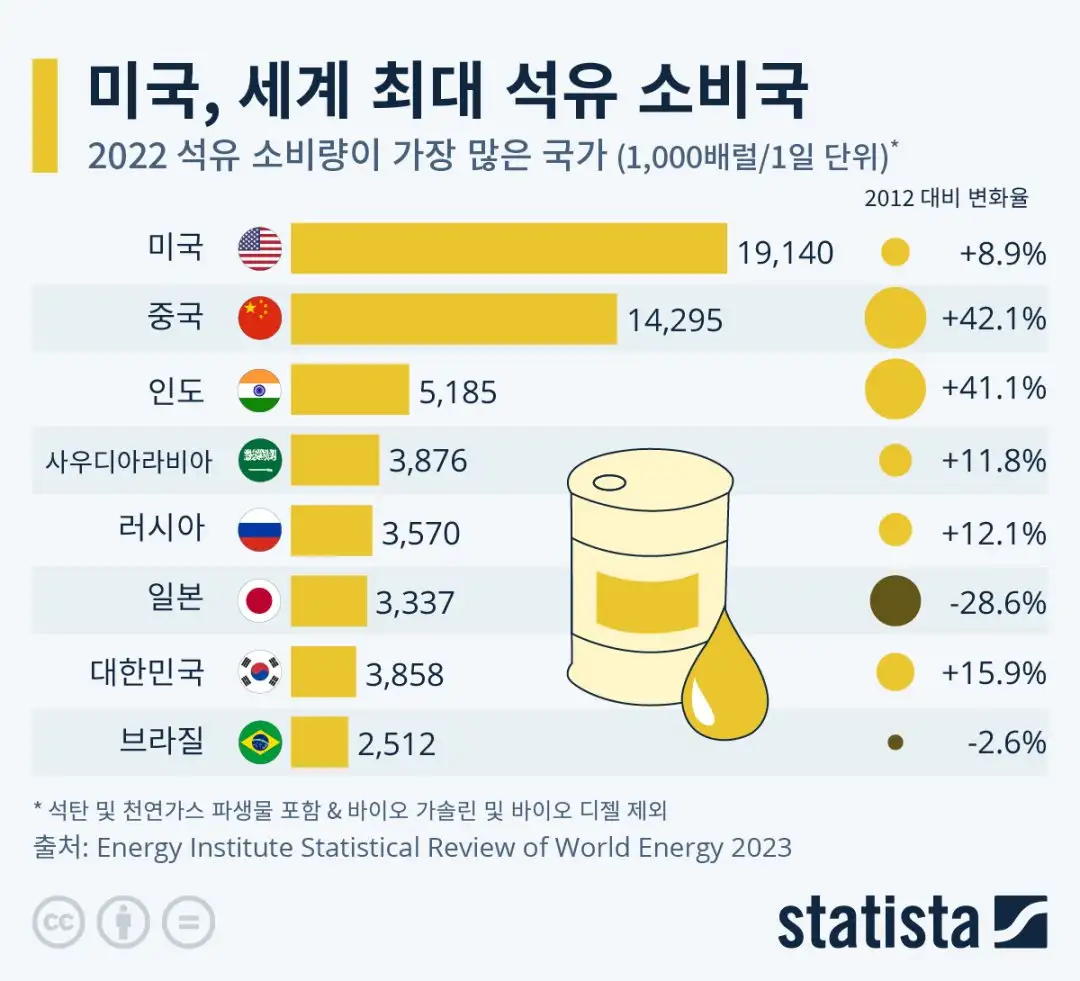 미친듯히 석유 필드에 빨대를 꼽고 있는데, 올해는 하루 평균 1340만 배럴을 뽑아내고 있는 중 임.