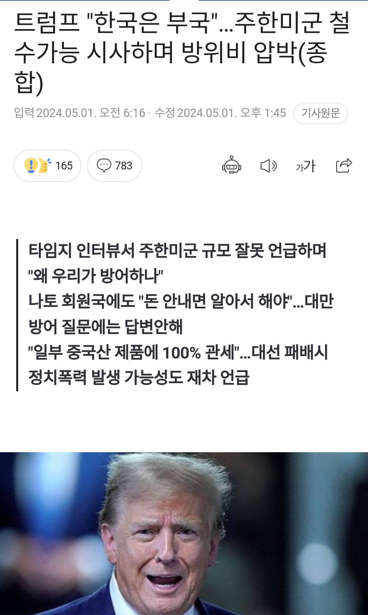 [속보] 트럼프, 주한미군 철수 시사 ㄷㄷㄷㄷㄷㄷㄷㄷㄷ