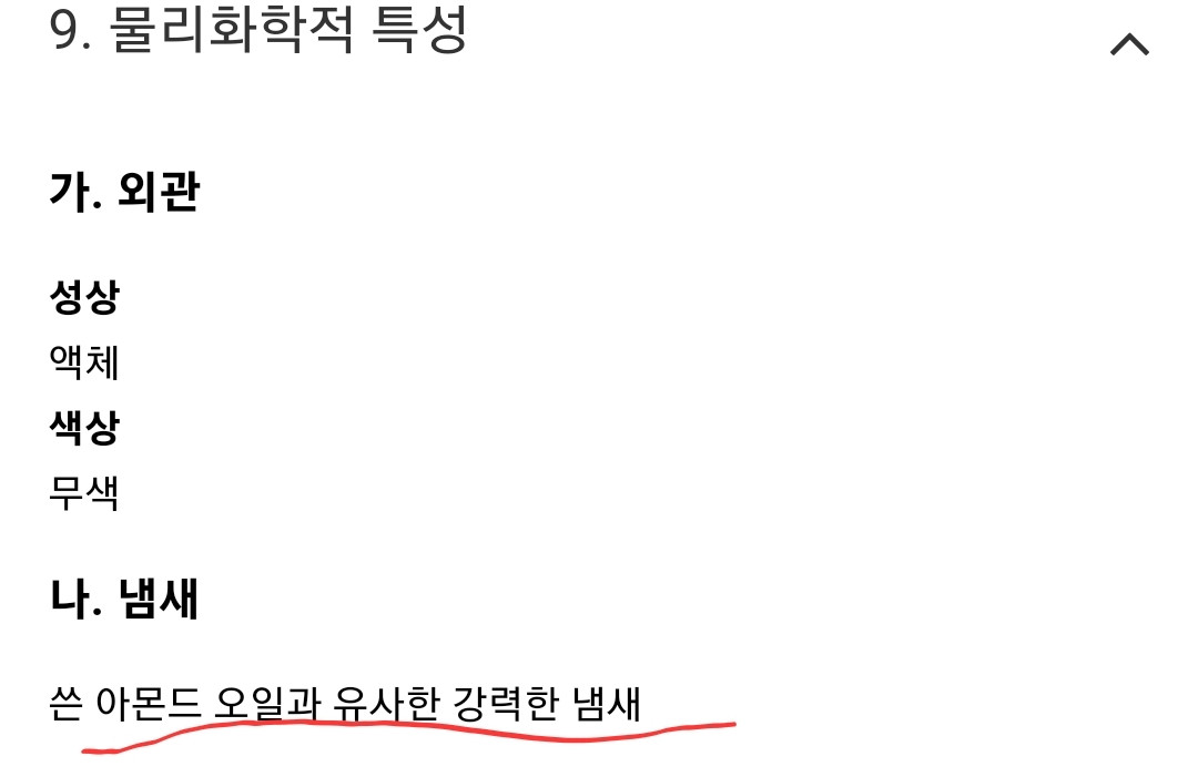 시안화물 => 향기나는 , 인스턴트 주제에 과일맛 나는 모든 제품 주의
