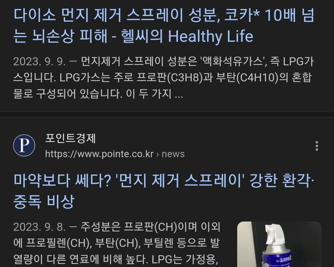 ( 다이소 먼지제거제 = 드라이 샴프 독성 인듯? )