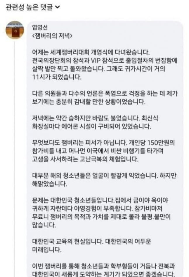 전라 지방의원은 잼버리을 염전노예라고 생각 하는 듯.
