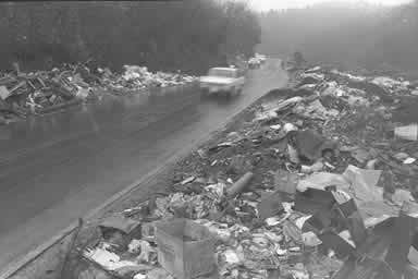 쓰레기 버리는 장소가 아닌 곳에 버려진 쓰레기 더미.