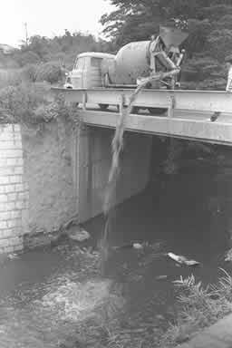 콘크리트 화학품 강가에 투기 물고기 운지