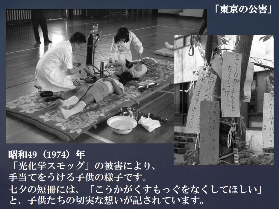 화학 스모그 때문에 치료받는 아이들의 모습 (이따이 이따이병 증가)