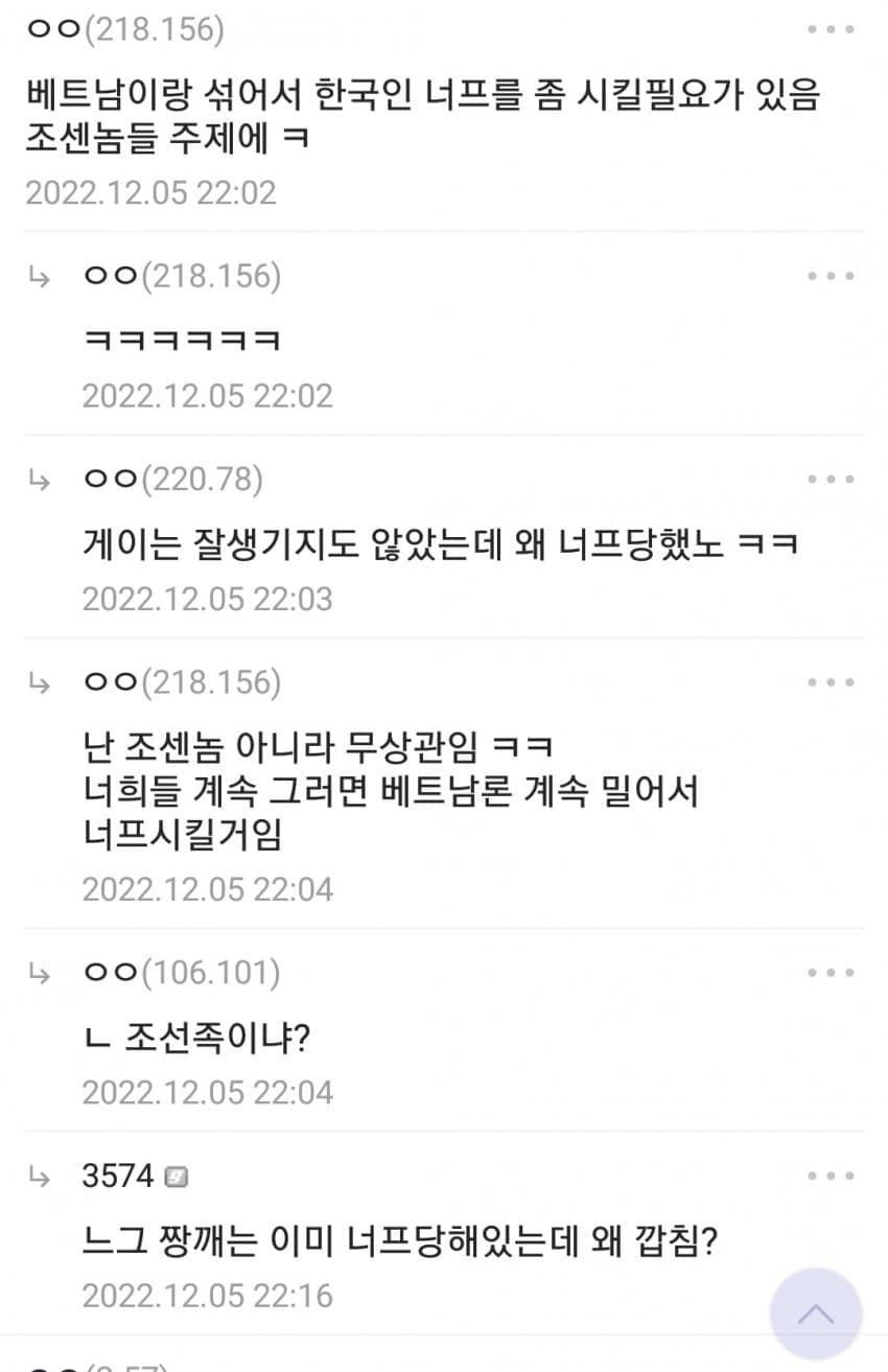 베트남론 섬짱개 화교들이 한국 똥남아로 열화시킨답시고 열심히 밀고 있음