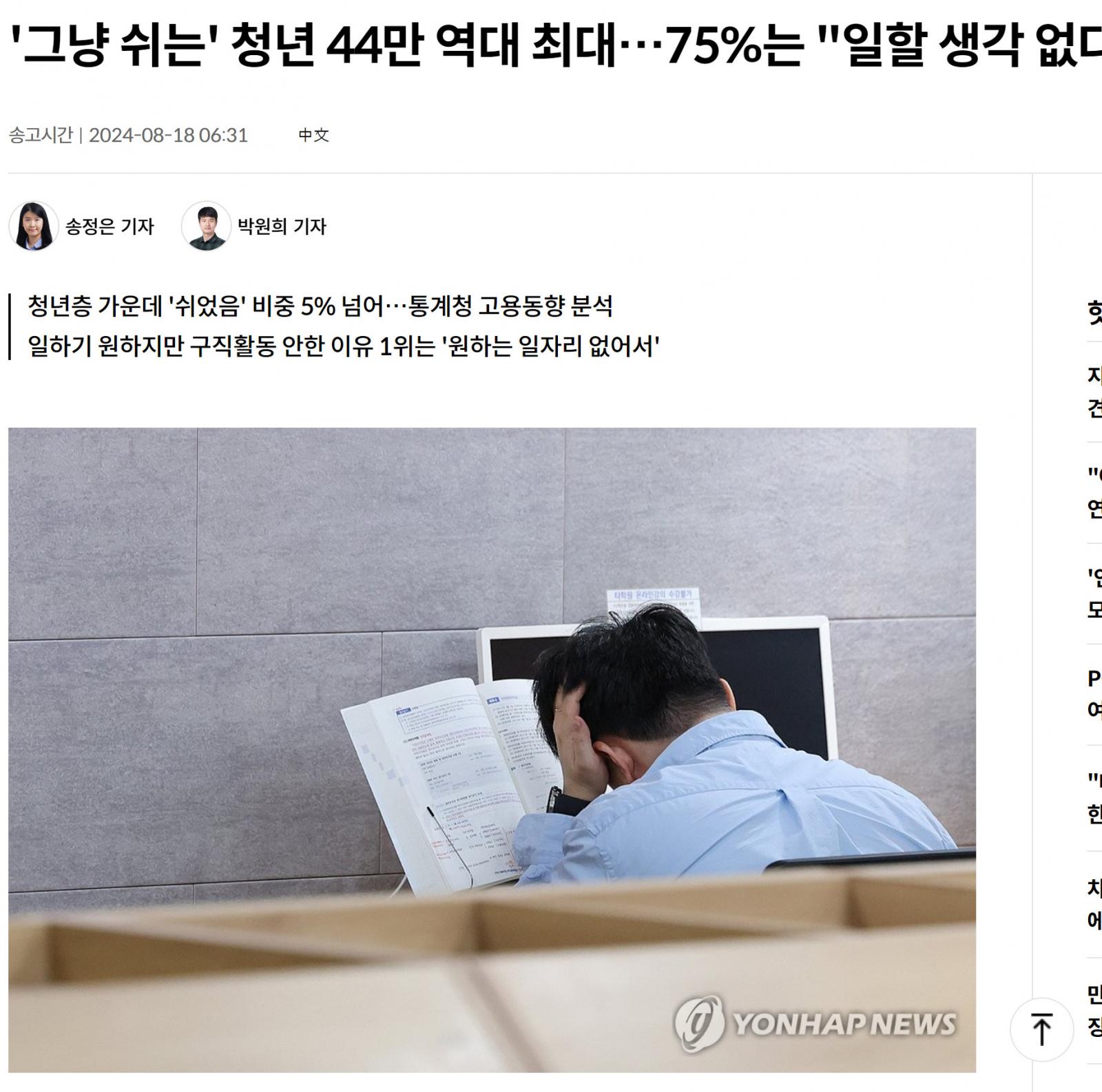 그냥 쉬는 청년 44만명 역대 최대