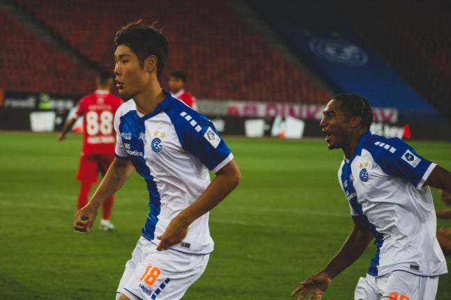 이영준. /사진=그라스호퍼 취리히 공식 사회관계망서비스(SNS)축구 통계 전문 매체 '풋몹'은 이영준에게 평점 7.9를 줬다. 그라스호퍼 공격진 중 최고 점수다. 매체에 따르면 이영준은 1득점을 비롯해 패스 성공률 87%(20/23), 크로스 성공 1회, 가로채기 2회, 공중볼 경합 성공 80%(4/5)를 기록했다.