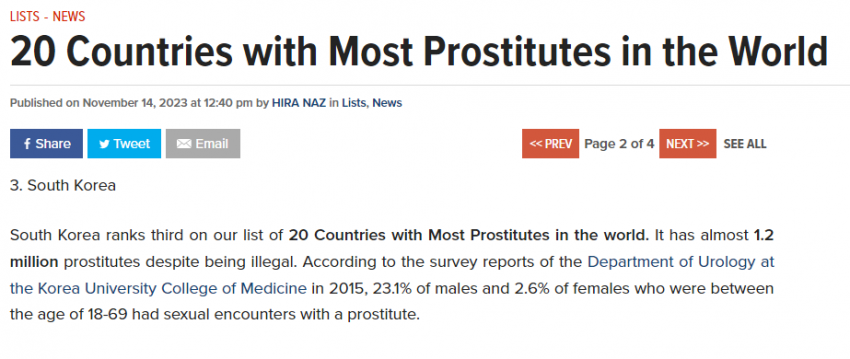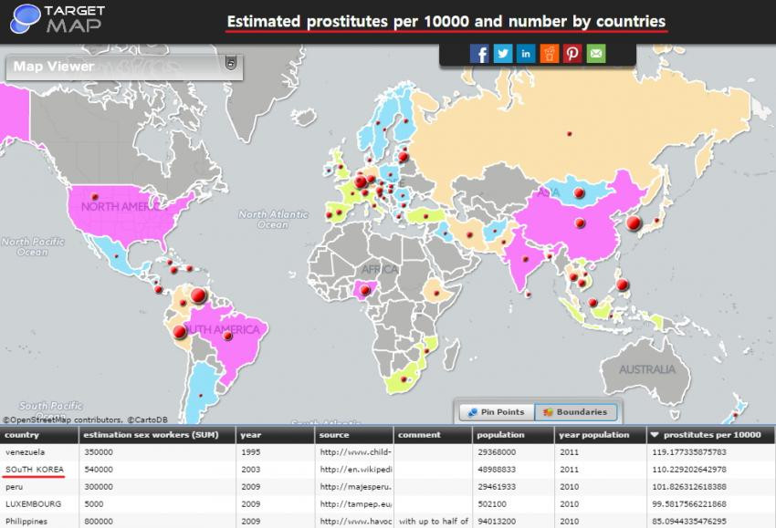 우리나라는 세계 2위의 창녀비율을 보여주고 있음