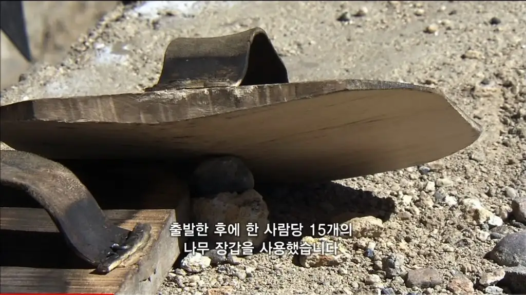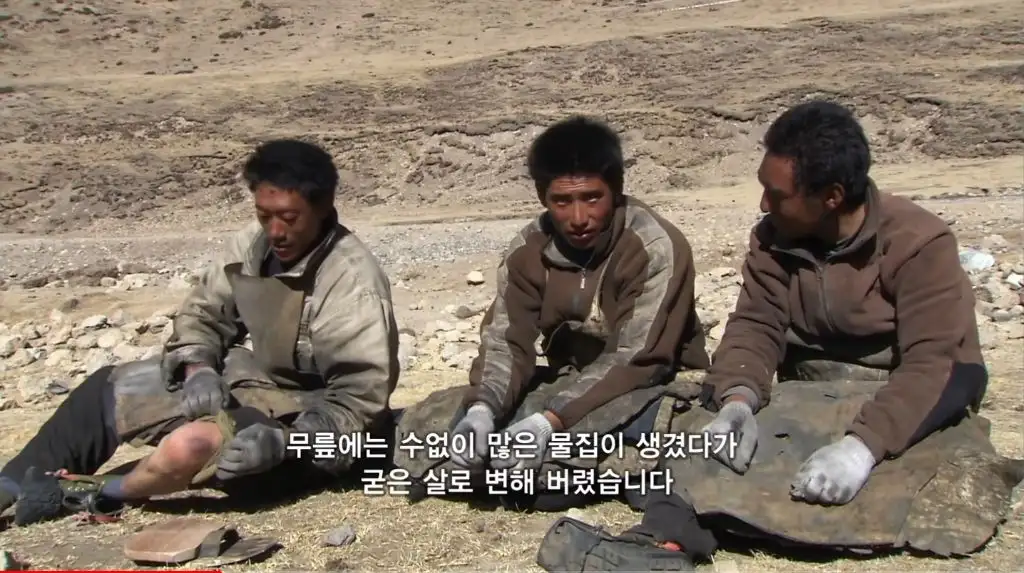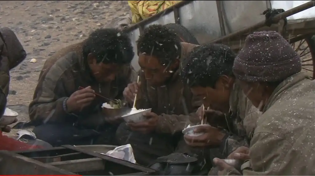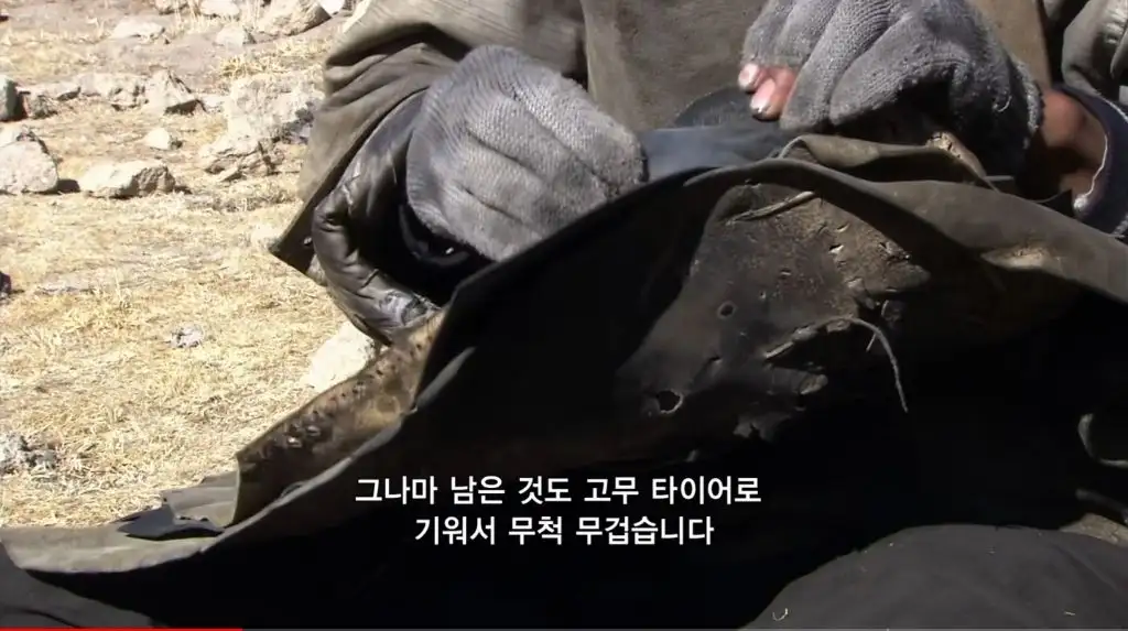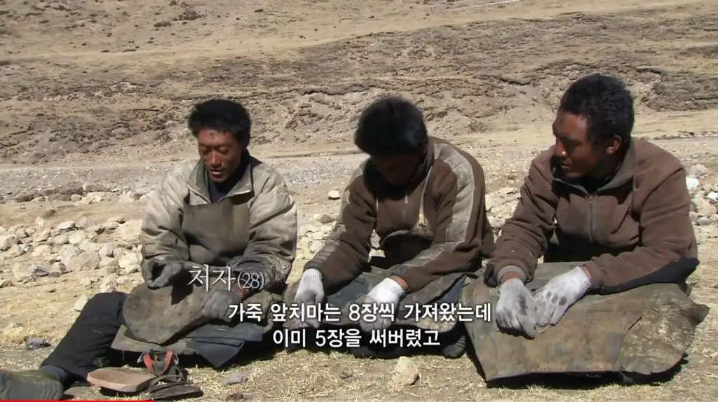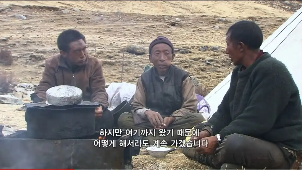 눈보라 치는 날씨에도 천막을 치고 잠들며, 말린 육포에 쌀이나 빵을 먹음