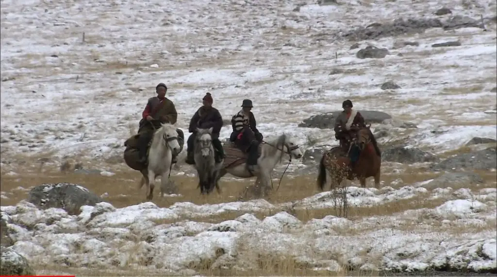 말을 탄 유목민 5명이 순례길을 떠남