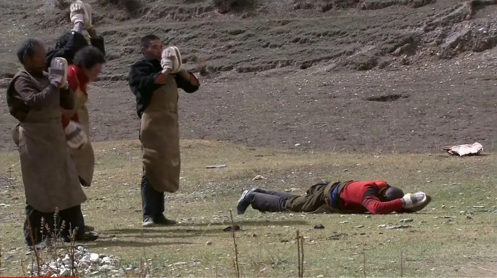 오체투지를 할 때 이마를 땅에 대서 이마에 피멍과 굳은살이 생김
