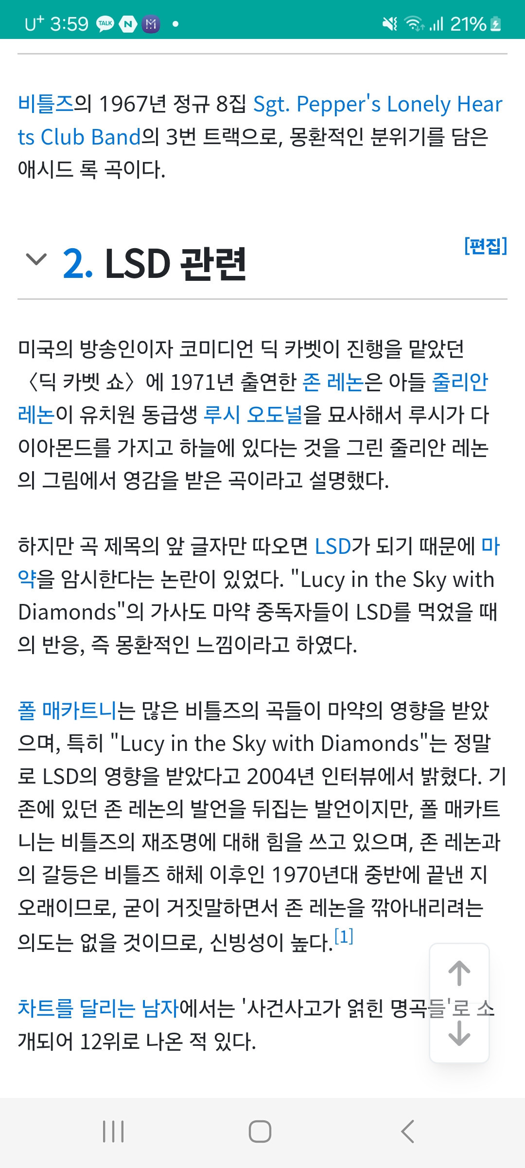 비틀즈가 LSD를하고 영감을 받아 만든 노래이다